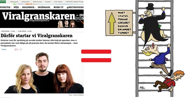 Tidningen Metro’s Viralgranskaren kritiserade igår Informationskriget.se. Kritisk granskning är bra, men när sådan reduceras till att fokusera på detaljer i ett inlyft citat snarare än på sådant som jag själv har skrivit och på sådant som var huvudbudskapet i texten så blir det som hade kunnat vara något bra bara en sorglig påminnelse om hur illa ställt det är med de etablerade medierna i vårt land. Då Viralgranskaren undviker huvudbudskapet i en text, hittar en detalj som de påstår är felaktig, rentvättar storföretaget och sedan med stämpel och allt framställer det som att allt i Informationskrigets texter om Facebooks nya användarvillkor är falskt så visar det tydligt hur dagens journalistkår gör vad de kan bäst, slickar uppåt och sparkar nedåt.