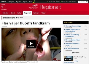 SVT bedriver ofta propagandakampanjer för fluor, viket kan exemplifieras av artiklarna Ångrar användningen av fluorfri tandkräm och Fler väljer fluorfri tandkräm.
