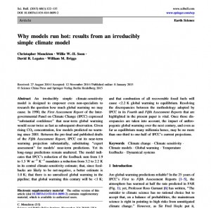 Här om dagen publicerade Lord Christopher Monckton et al. den nya forskarrapporten som visar vad som är fel i de klimatmodeller som FN:s klimatpanel IPCC använder sig av. Den nya forskarrapporten har lagt fram helt nya och enklare beräkningsmodeller som stämmer mycket bättre överens med verkligheten än de gamla klimatmodellerna.
