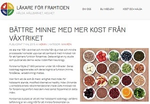 Läkare för framtiden verkar vara en sida som är populär bland veganer och vegetarianer, men sidan imponerar inte. Visst, jag har inte hunnit titta på alla artiklar de har skrivit, med de artiklar jag har tittat på har inte varit bra då de har varit fyllda med tankefel likt de som de gör i artikeln “Bättre minne med mer kost från växtriket“. Att jag tog just denna artikel som mitt exempel var att den för tillfället låg högst upp på deras sida.