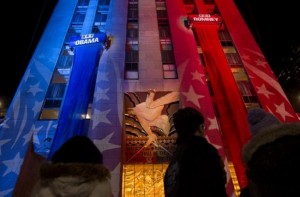På den amerikanska valnatten 2012 såg hela världen resultatet visas i realtid på The Rockefeller Building, vilken ägs av Rockefeller-familjen. Mellan staplarna som representerar det demokratiska och det republikanska partiet finns ett konstverk föreställande en Demiurg (en skapargud) som format världen med frimurarkompasset (passaren) – en viktig gnostisk symbol i hemliga sällskap. Symbolismen i denna scen är rätt talande och uppenbar: Oavsett vem som vinner, så är det frimurarkompasset som i slutändan formar världen… Och det är i stort sett vad du behöver veta om politik. Läs mer