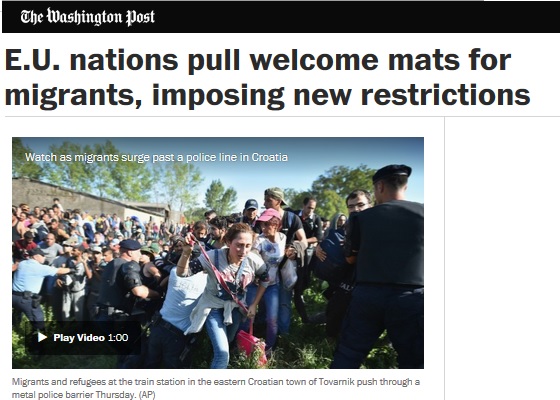 flyktingkrisen-001Den tidigare så välkomnande attityden mot människor som tar sig in i Europa håller på att hårdna. Det var inte mer än ett par veckor sedan som tongångarna från Tyskland var att de skulle ta emot alla som kom och ännu kortare tid sedan Kroatien de med öppna armar skulle släppa in alla som ville in i Europa sedan Ungern hade stängt sin gräns mot Serbien, men det var då, nu verkar allt enligt en artikel [1] i “The Washington Post” vara under snabb förändring. Mängden människor som började ta sig in i Kroatien blev snabbt alldeles för stor och inte ens Tyskland klarar att ta emot den stora mängd människor som anländer varje dag.