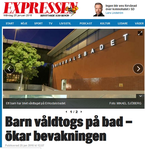 En av de 14 anmälningarna under 2015 gällde två tioåriga flickor blir ifattåkna i vattenrutschbanan av en 16-årigt pojke (ett så kallat ensamkommande barn) som tar på deras kön.