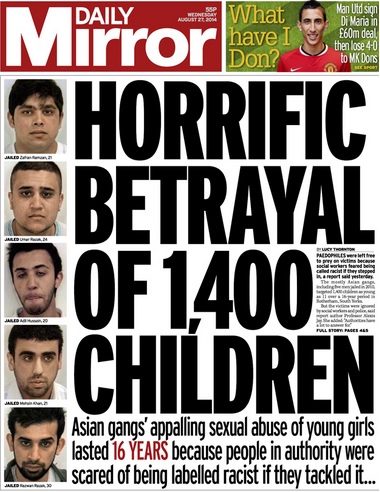 Minst 1.400 barn, de allra flesta flickor och en del så unga som 11 år, blev under denna långa tid sexuellt trakasserade, utsatta för hot, utpressning, våld, våldtäkter, gruppvåldtäkter, blev kidnappade och blev tvingade att prostituera sig av kriminella ligor som främst bestod av pakistanska män.