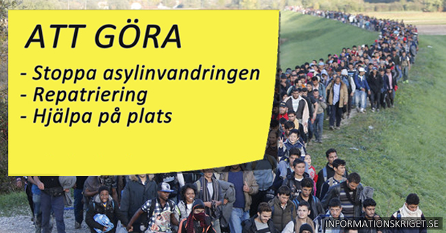 Det bästa för framtiden vore att asylinvandringen till Sverige i princip upphör och att den absoluta majoriteten av alla icke-européer som har asylinvandrat de senaste 15–20 åren repatrieras. Repatriering betyder återvända till hemlandet. Eventuellt kan kanske ett litet antal kvotflyktingar tillåtas, där särskilt ömmande fall och vissa politiska flyktingar tas emot och som bara får stanna tillfälligt i landet.
