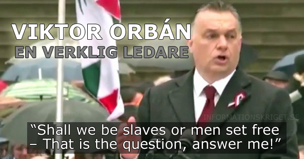 Tänk om Sverige hade haft en ledare som Ungerns Viktor Orbán, en ledare som vågar säga vad som måste sägas, att tiden för motstånd är kommen. En ledare som vill sitt folk väl, en ledare med mod att stå emot globalisternas agenda, en ledare som vill försvara och bevara Europa. Tänk om Sverige hade haft en sådan ledare, hur bra hade inte vårt land då kunnat vara?
