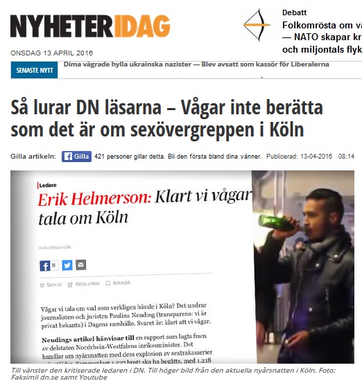 Mycket bra och läsvärd artikel på Nyheter Idag om hur DN lurade sina läsare genom att förvränga vad som hände på nyårsaftonen i Köln.