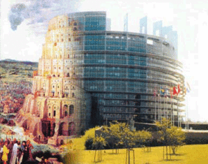 Man kan fråga sig varför EU-parlamentets “Louise Weiss”-byggnad, den tornliknande delen, är så lik den klassiska målningen av “Babels torn” av Pieter Brueghel den äldre från 1563? Likheterna är för stora för att det ska vara en slump.