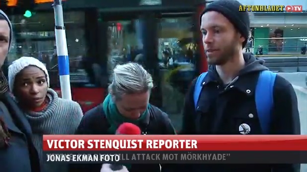 I följande filmklipp kan ni höra på intervjun där Tess Asplund vid 1:33 minuter ger sin version av vad som hände på Hamngatan utanför NK efter Folkets demonstration den 30 januari, där hon beskriver det som att de bara helt oprovocerade blev påhoppade.