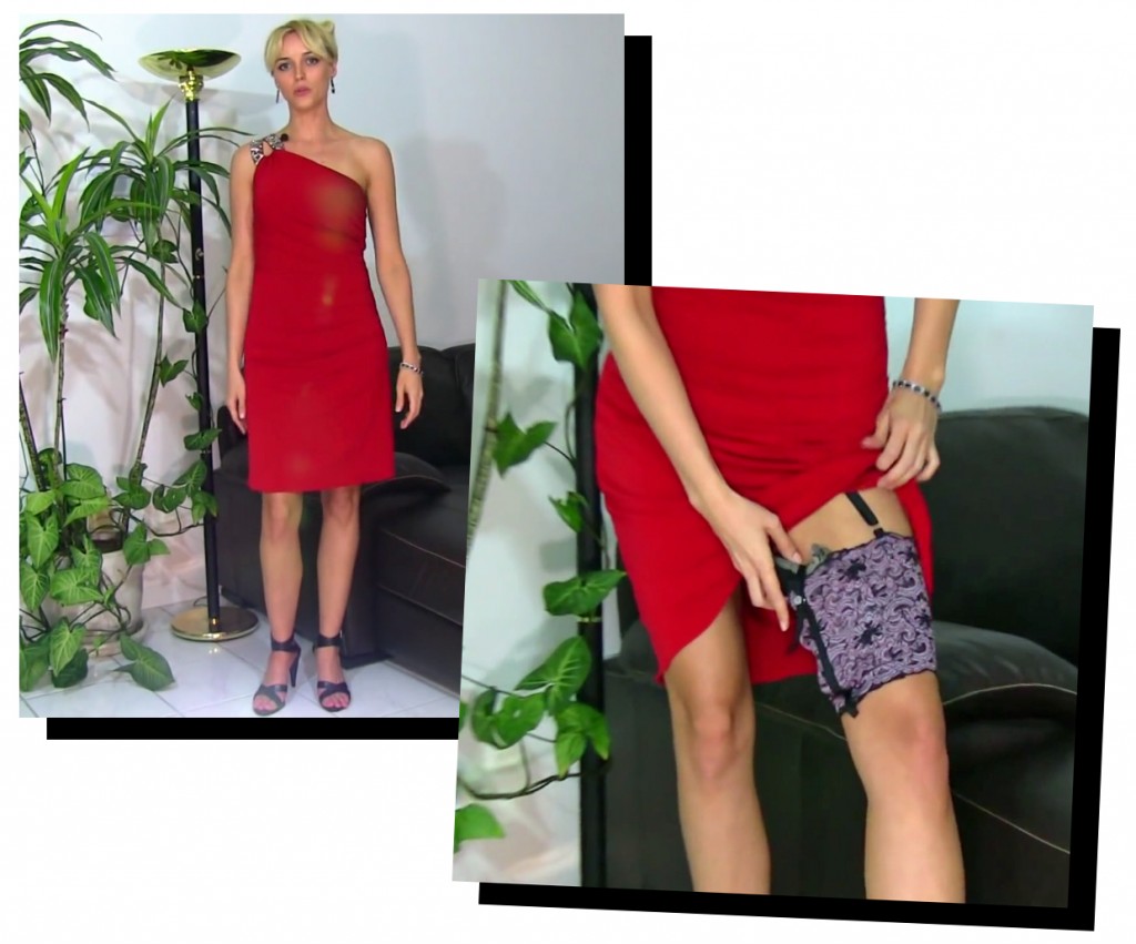 Här kan man se hur smidigt det går att bära ett dolt vapen även när man är klädd på ett sätt som de flesta tror gör det omöjligt att bära ett vapen. Kvinnan på bilderna är den självförsvarsförespråkande Bunny Hunter.