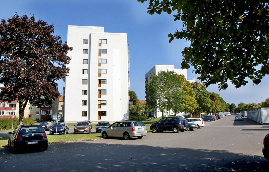 Denna bild av en av parkeringsplatserna längst Havstenavägen valde Skaraborgs Allehanda att ha med i sin artikel. Kanske var det här den misstänkta våldtäkten skedde? Området är ett invandrartätt höghusområde.