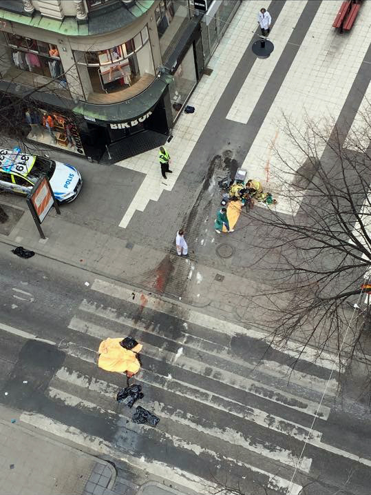 En lastbil körde just över människor på drottninggatan i sthlm. Såg det från fönstret.