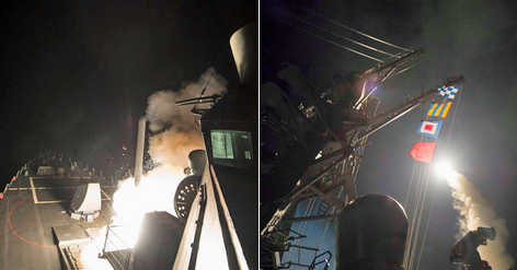 Strax efter klockan två inatt svensk tid avfyrade USA sammanlagt 59 kryssningsrobotar från två amerikanska örlogsfartyg stationerade i östra Medelhavet mot flygbasen Shayrat nära staden Homs i Syrien. Attacken som USA självt uppger är den första sedan inledningen på Syrien-konflikten 2011 som har riktat direkt mot Syrien inleddes på orders från president Donald Trump.