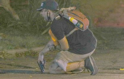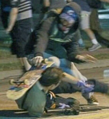 Här ser man en bild av hur Huber slår med sin skateboard på Rittenhouse, vilket tydligt syns i flera av filmklippen som finns.